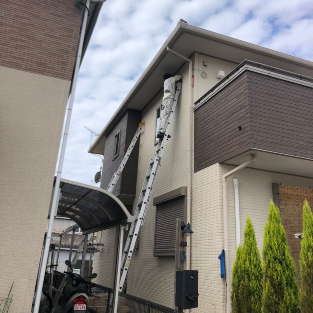 高所作業の場合、2名以上の作業員が必要でほとんどの業者が足場を組んでの駆除施工となります。
